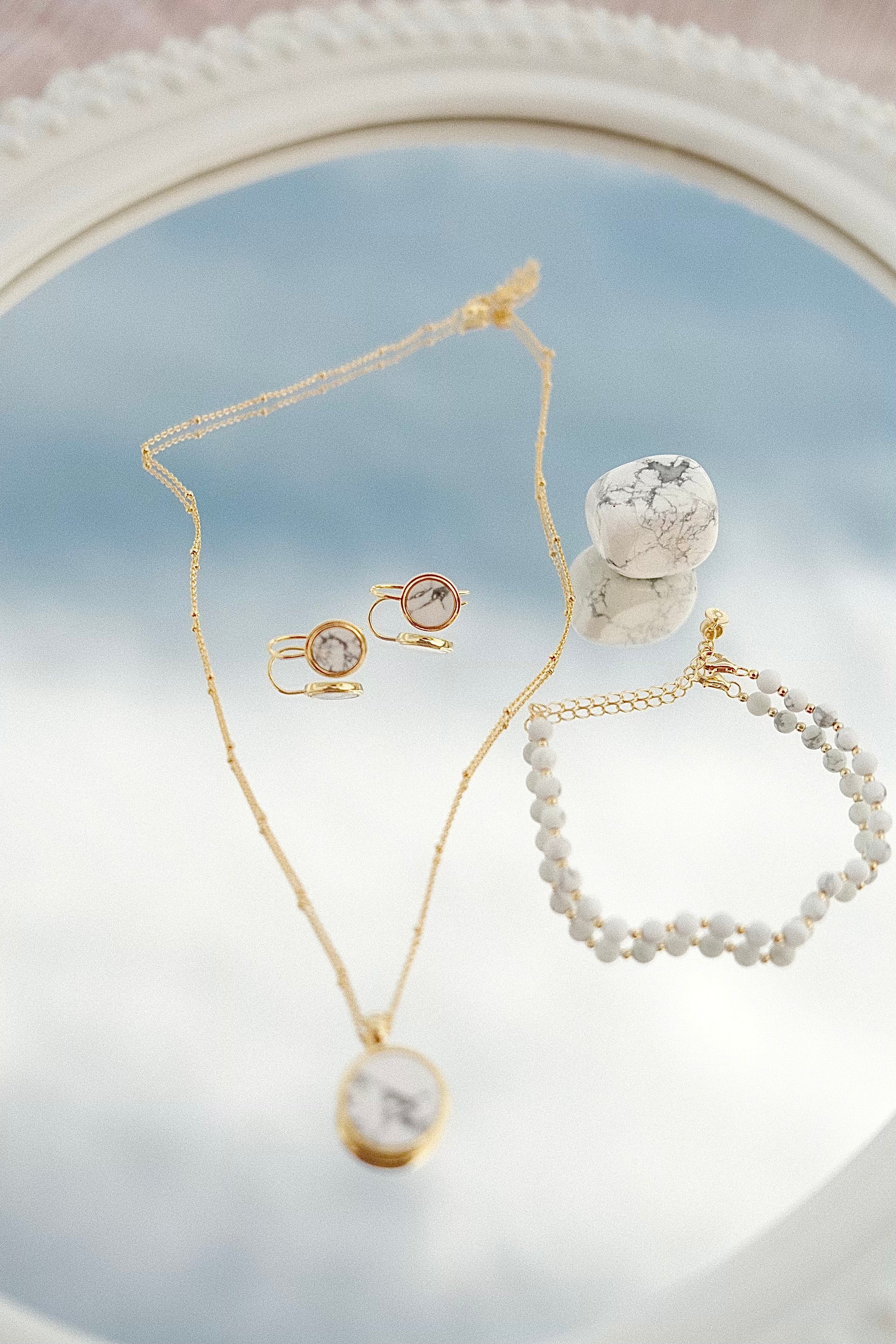 Moreover, the durability of howlite ensures that your jewelry remains pristine even with frequent wear, making it an ideal choice for everyday adornment. Whether you're running errands, attending meetings, or enjoying a night out with friends, howlite jewelry promises to elevate your style with its timeless allure and enduring charm. Embrace the serene beauty of howlite and let its tranquil energy accompany you throughout your everyday adventures, infusing each moment with a sense of calm and grace.