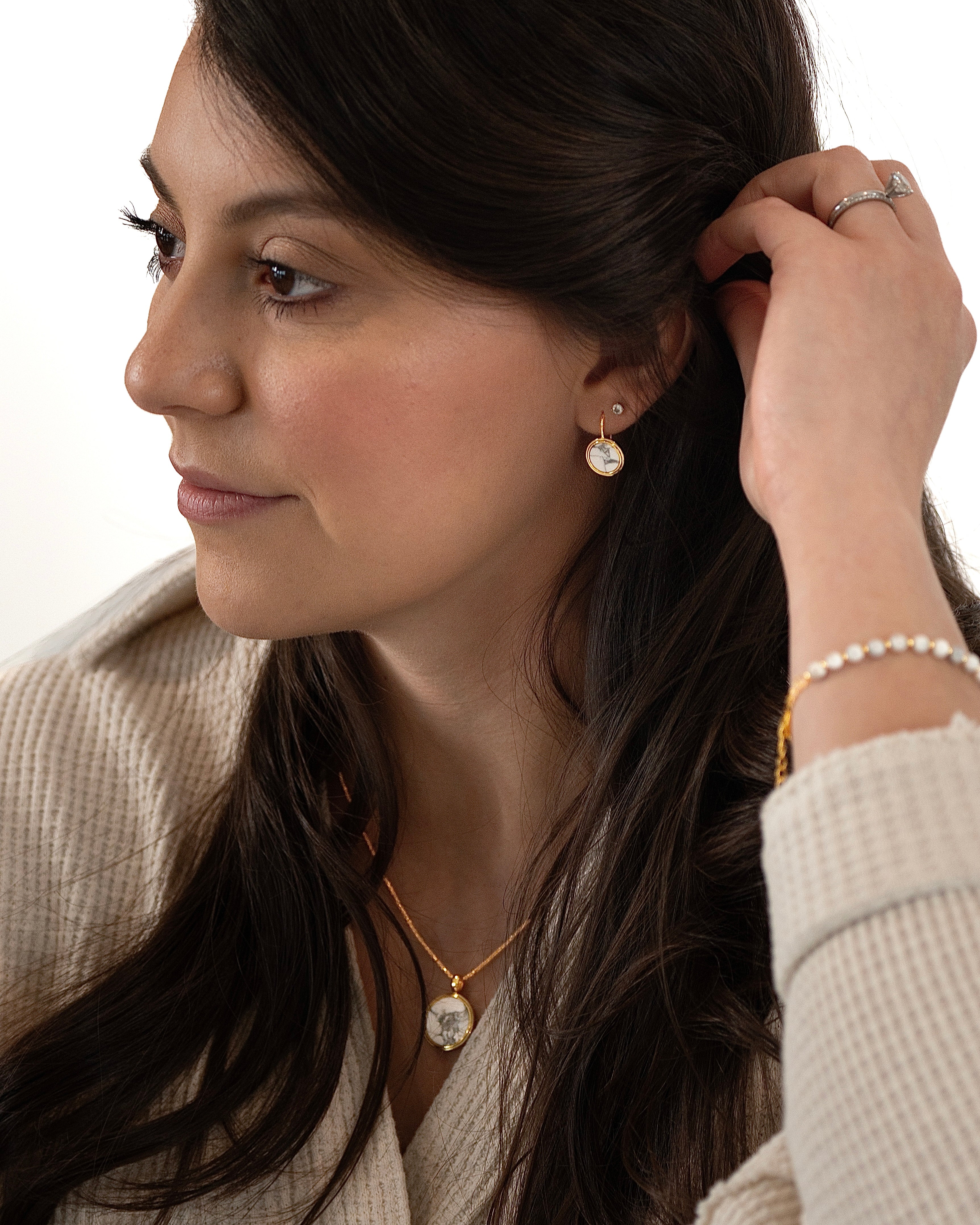 Howlite jewelry stands as a serene and sophisticated choice for your everyday jewelry, effortlessly infusing your wardrobe with a touch of understated elegance. Renowned for its calming white hue adorned with delicate gray veining, howlite emanates a sense of tranquility and balance that resonates with daily life's rhythm. From minimalist howlite pendants to intricately designed howlite bracelets, each piece exudes refined beauty, making it the perfect complement to your everyday attire. The versatility of howlite jewelry transcends occasions, seamlessly transitioning from casual outings to formal events with grace and poise. Its subtle yet captivating appearance allows it to effortlessly blend with any ensemble, adding a subtle touch of sophistication to your look.